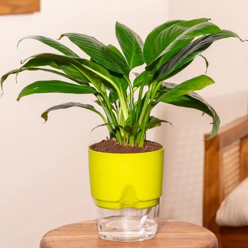 Peace Lilies thrive in low to moderate indirect light, making them perfect for indoor spaces with limited sunlight. Water the plant once every 5–7 days, keeping the soil moist but not waterlogged. The leaves may droop slightly when thirsty — a natural reminder to water.